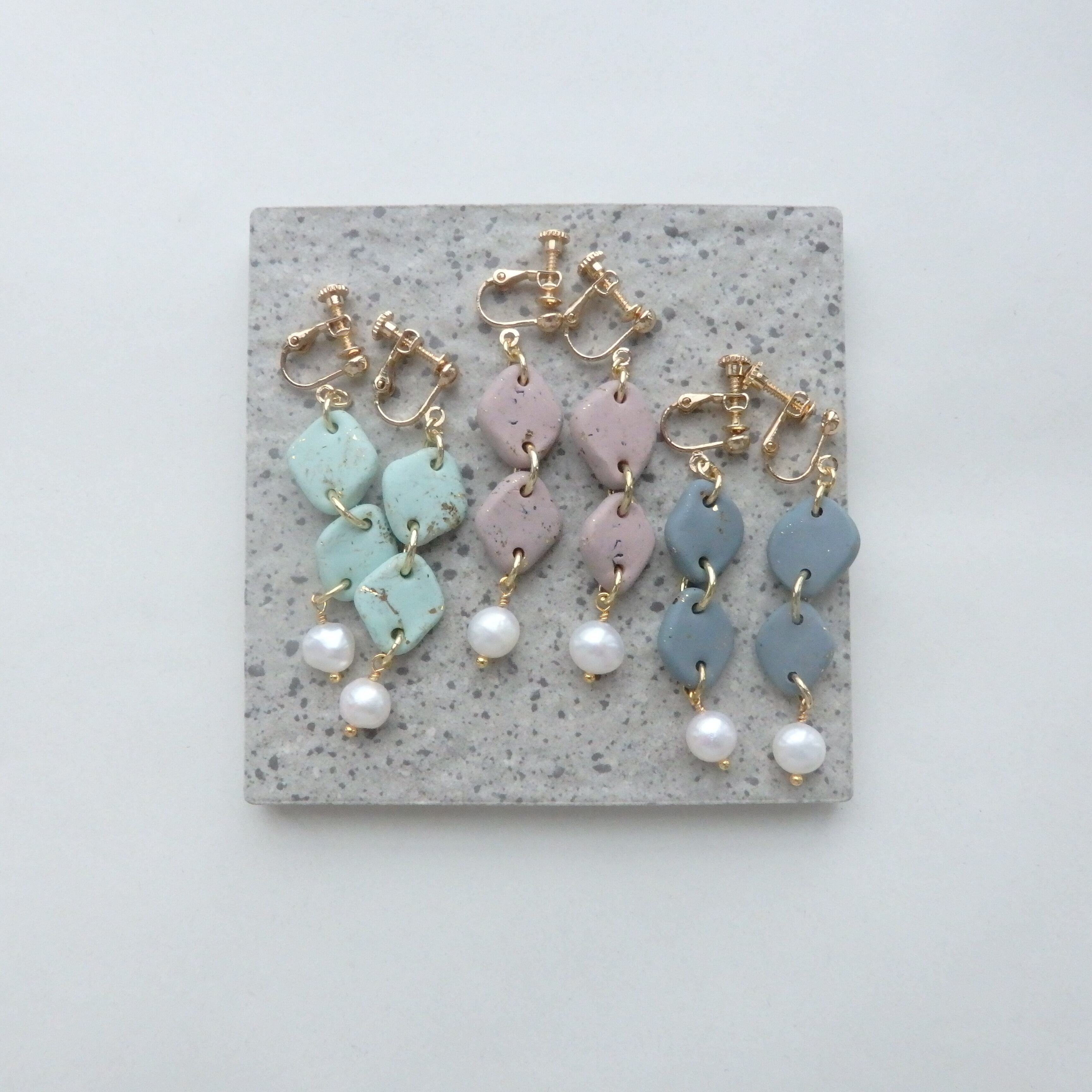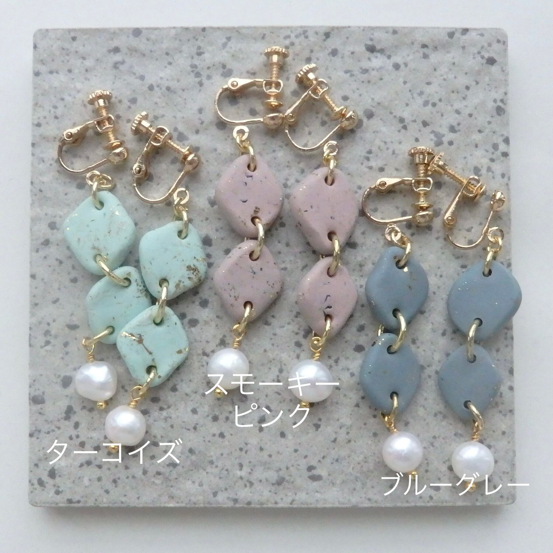 また、ポリマークレイは軽量なため長時間付けていても耳への負担が少ないのも特徴です。