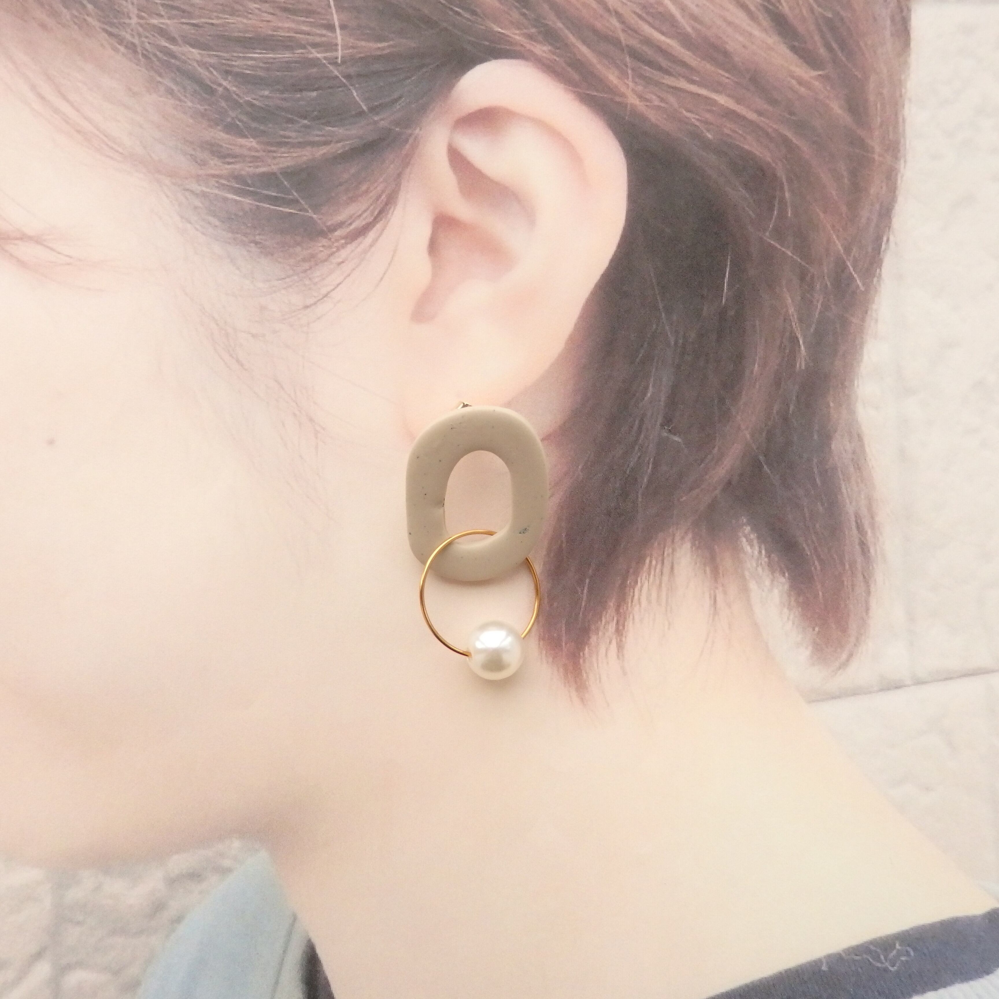 oval ピアス/イヤリング ポリマークレイ