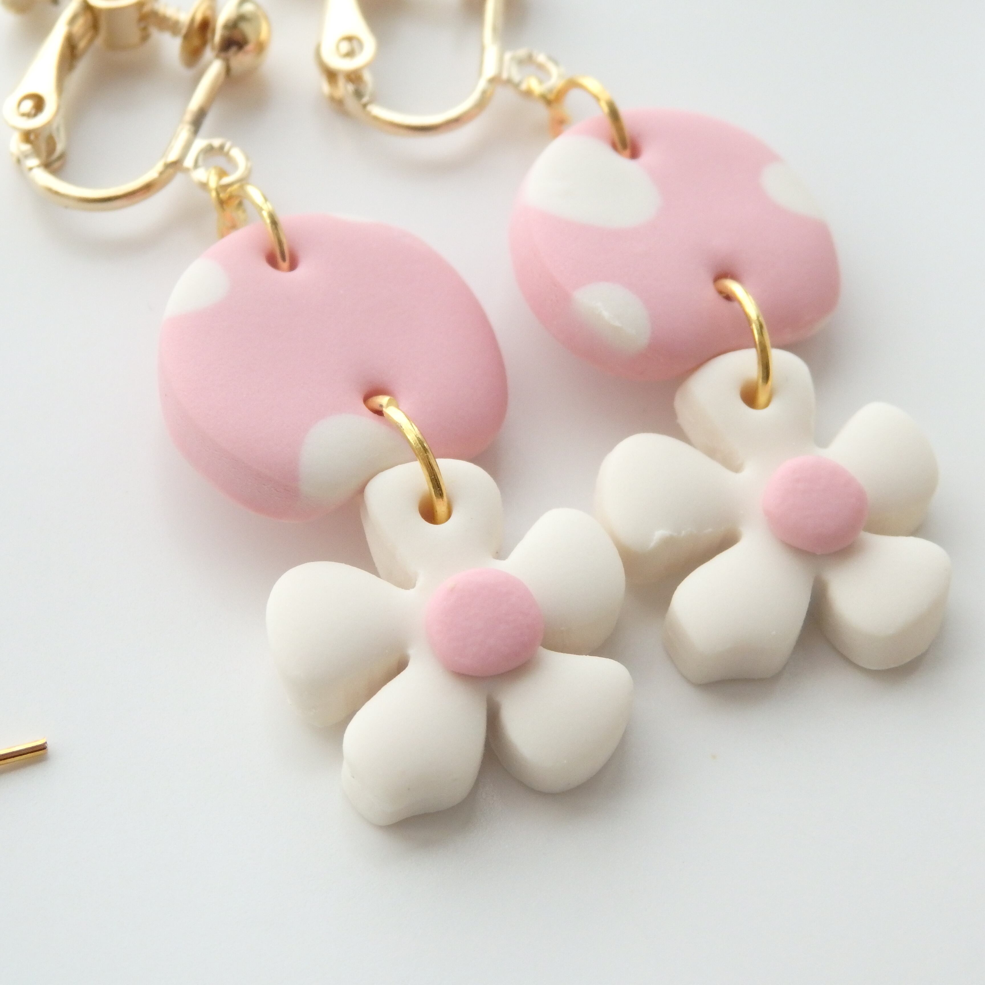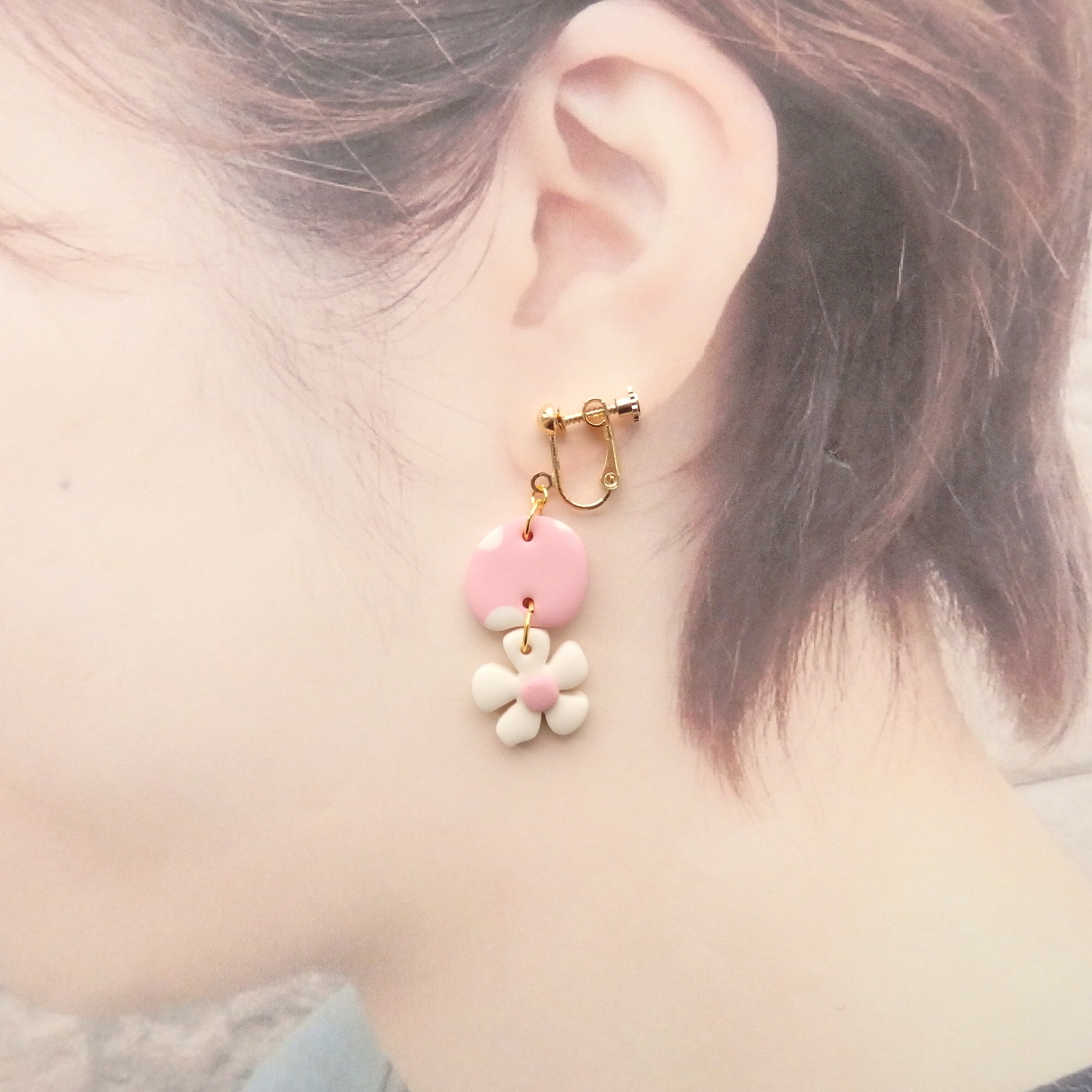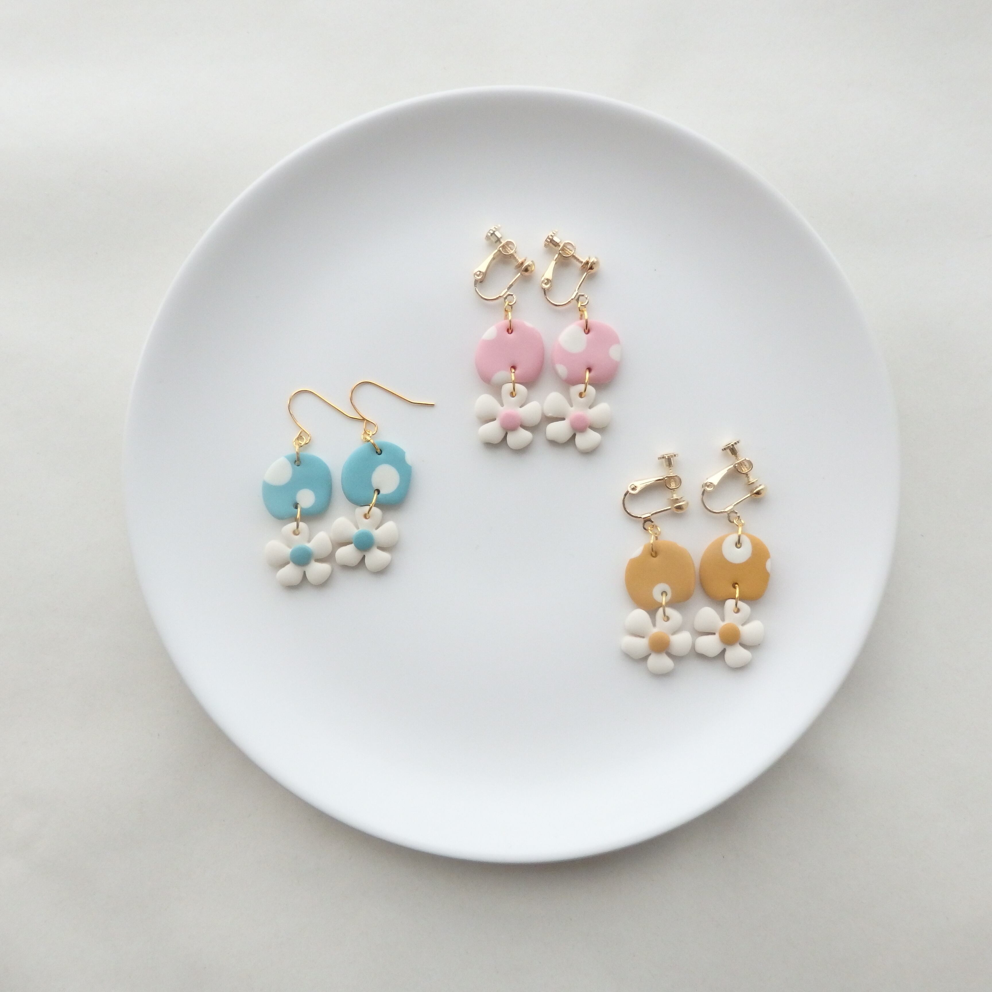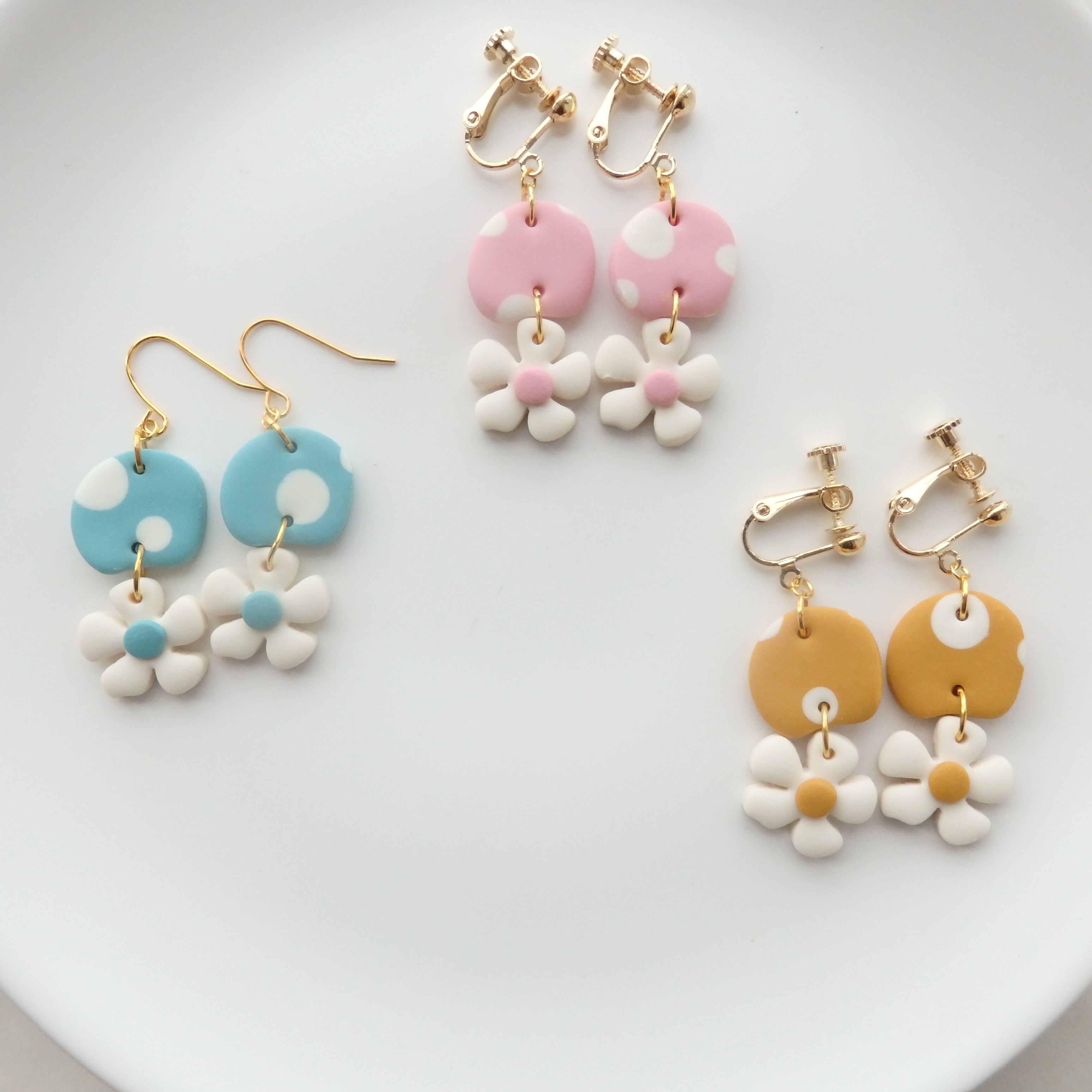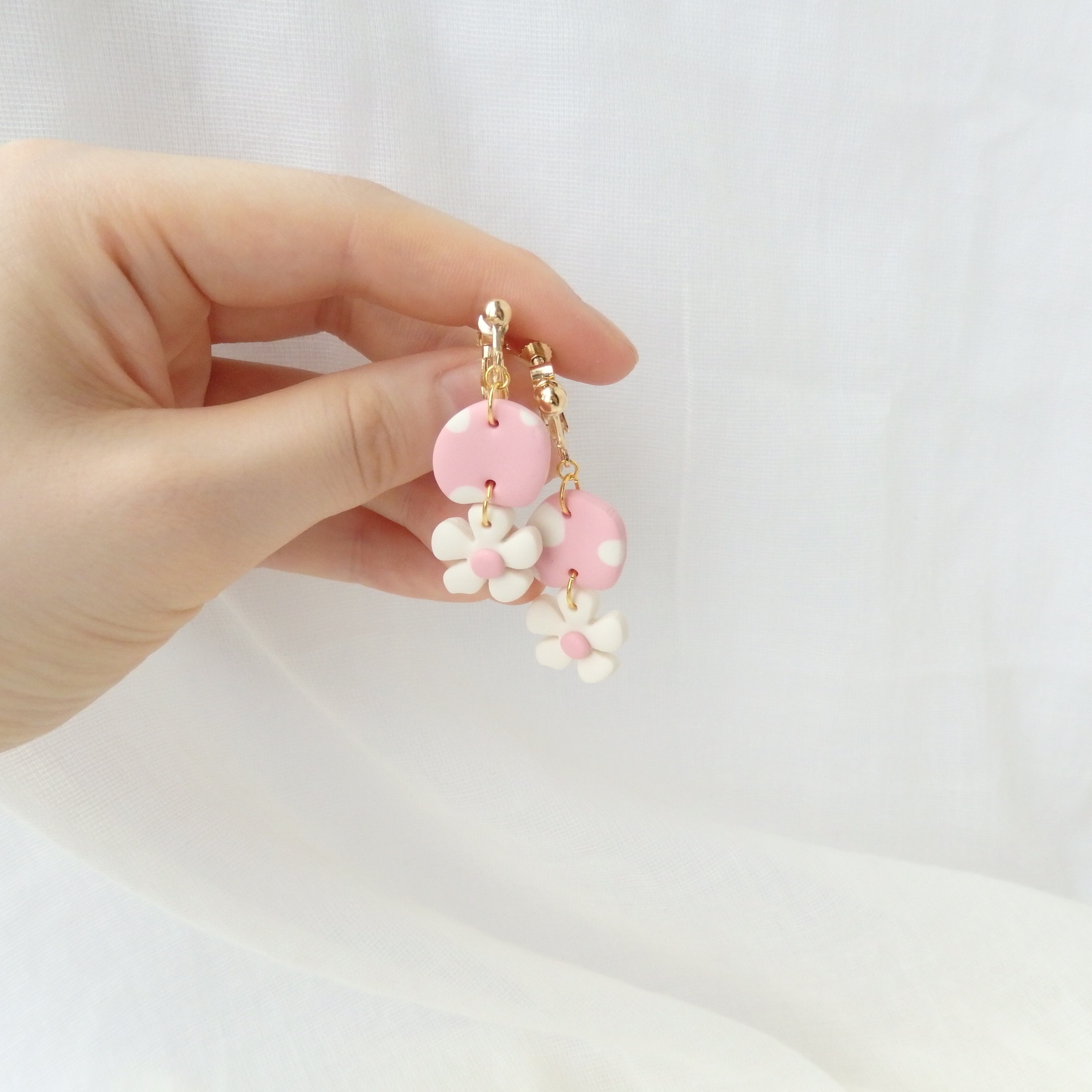 水玉とちっちゃなお花が揺れるキュートなピアス・イヤリング。