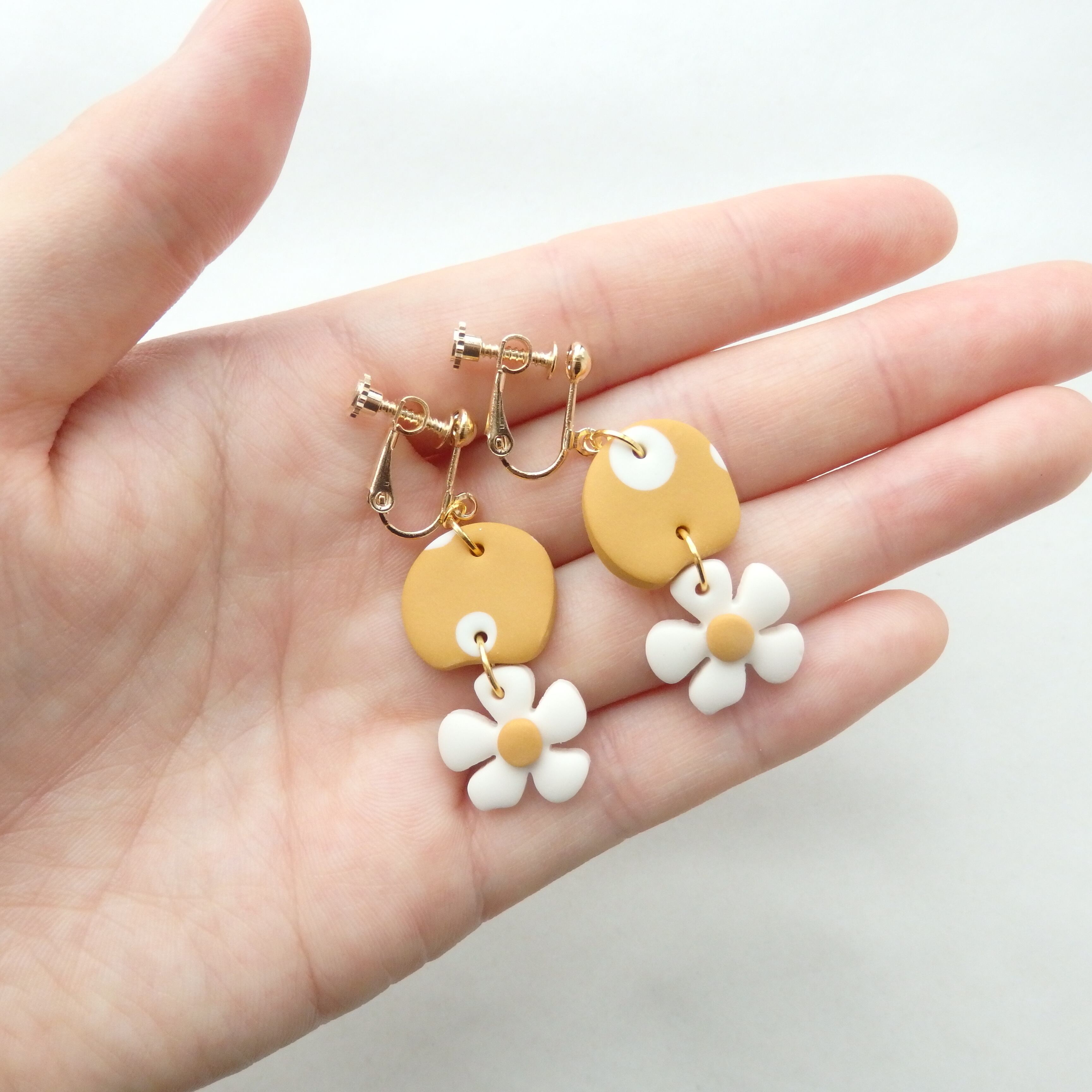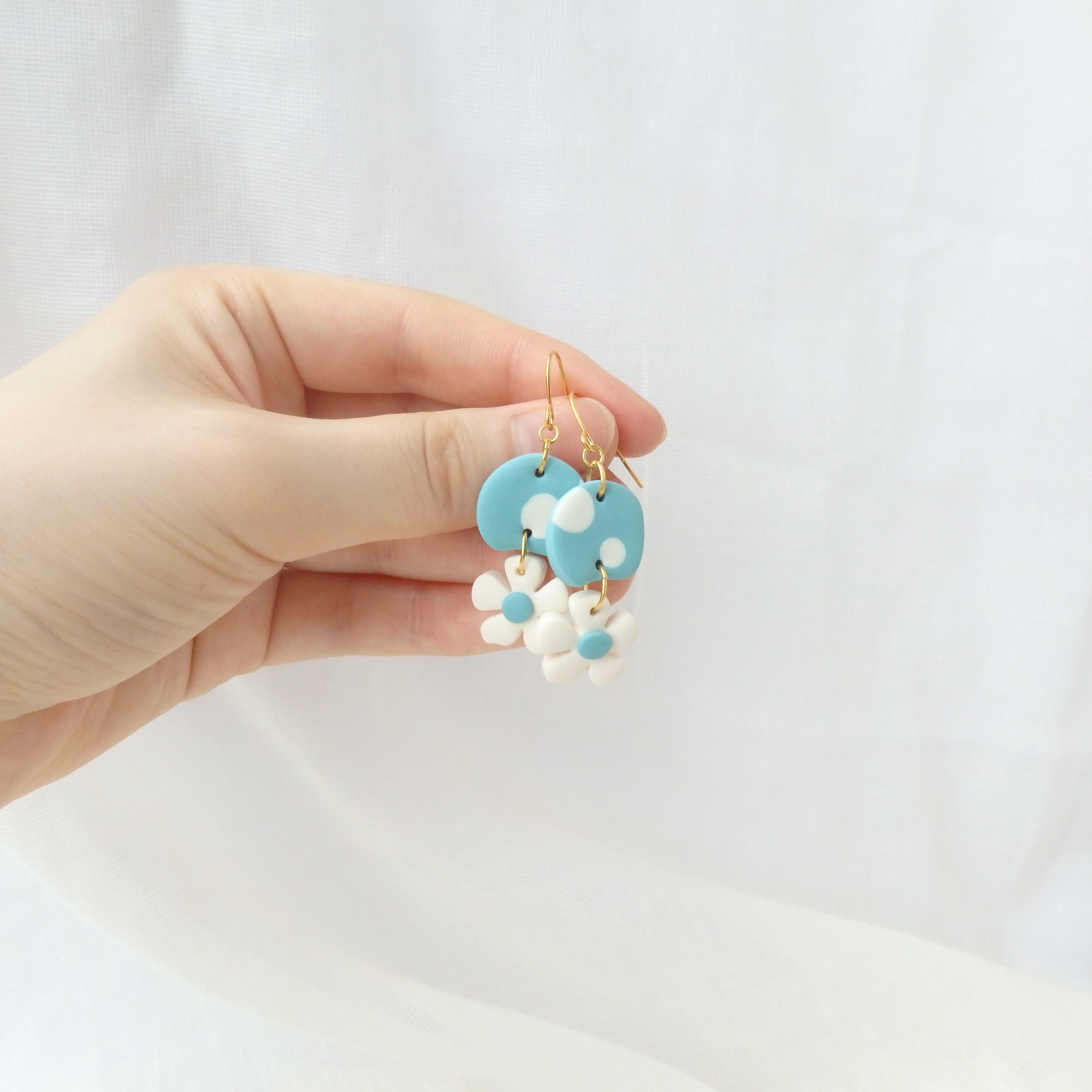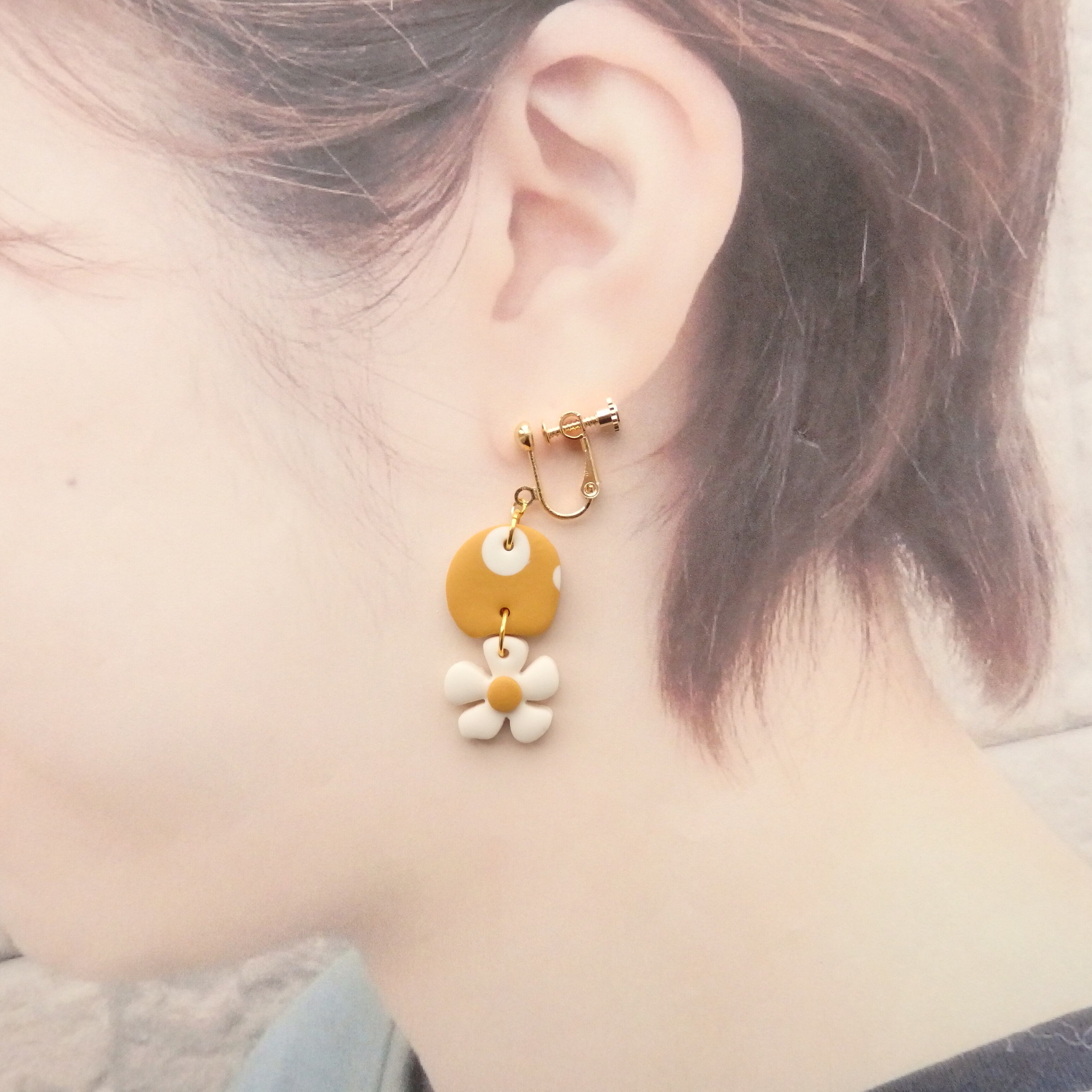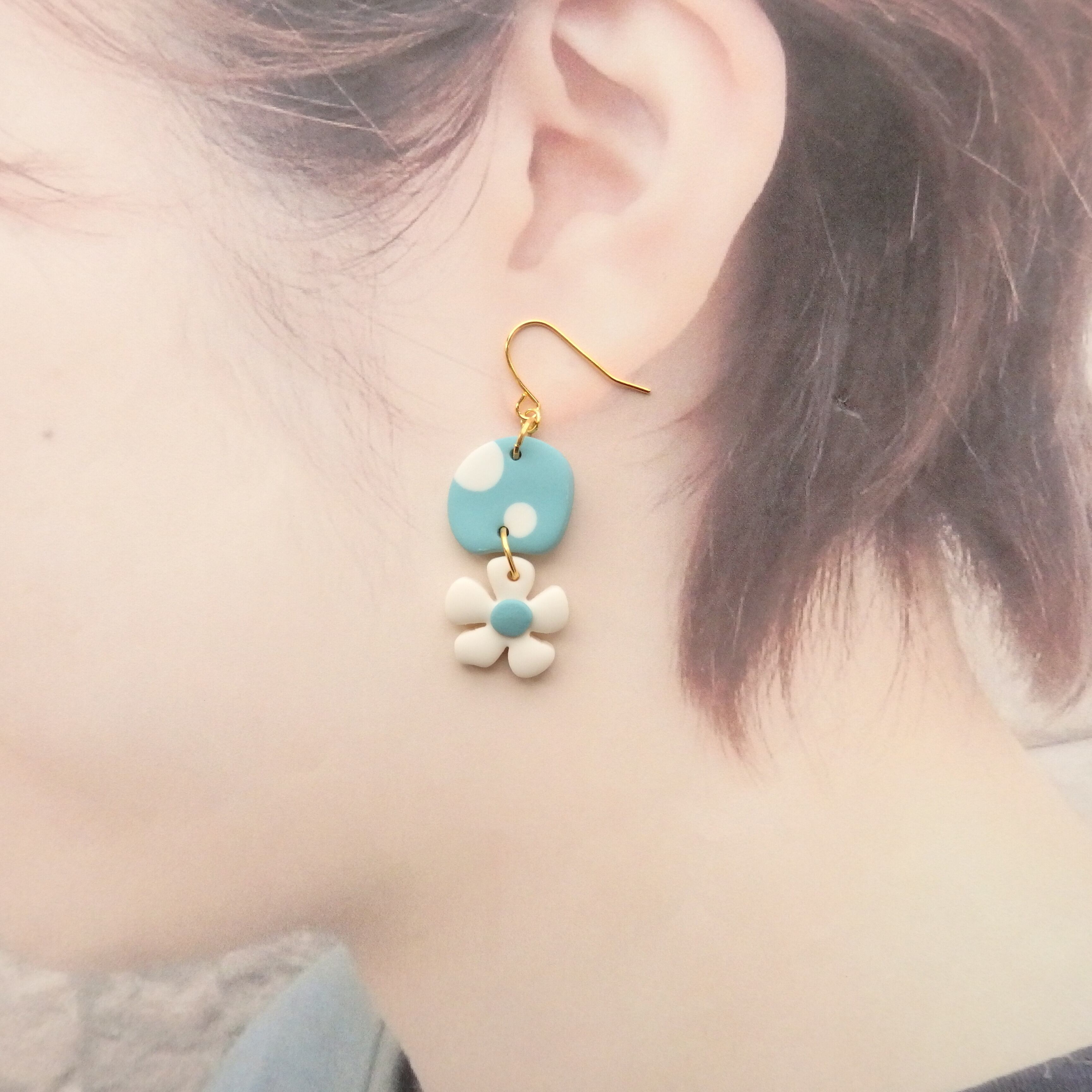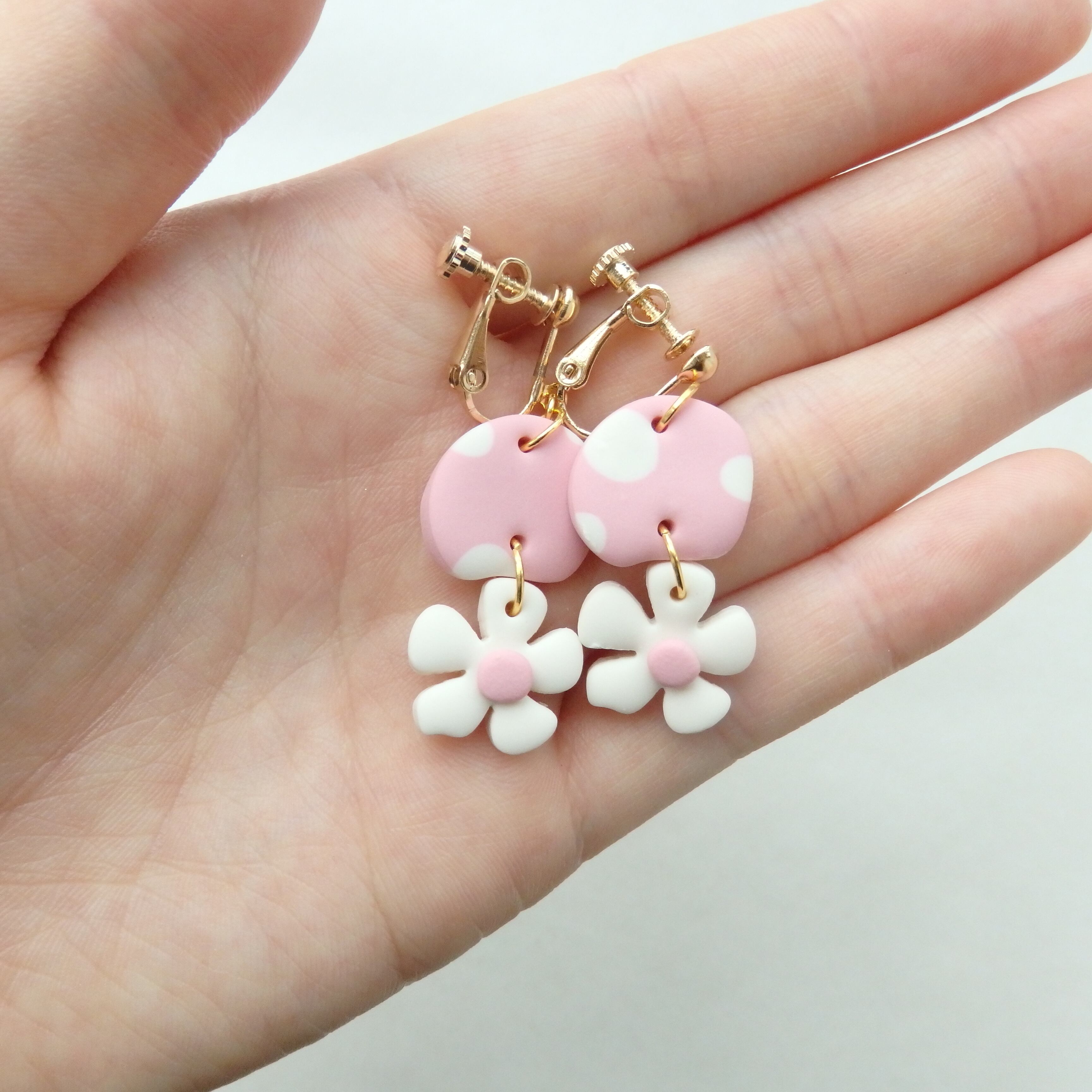 水玉とちっちゃなお花が揺れるキュートなピアス・イヤリング。