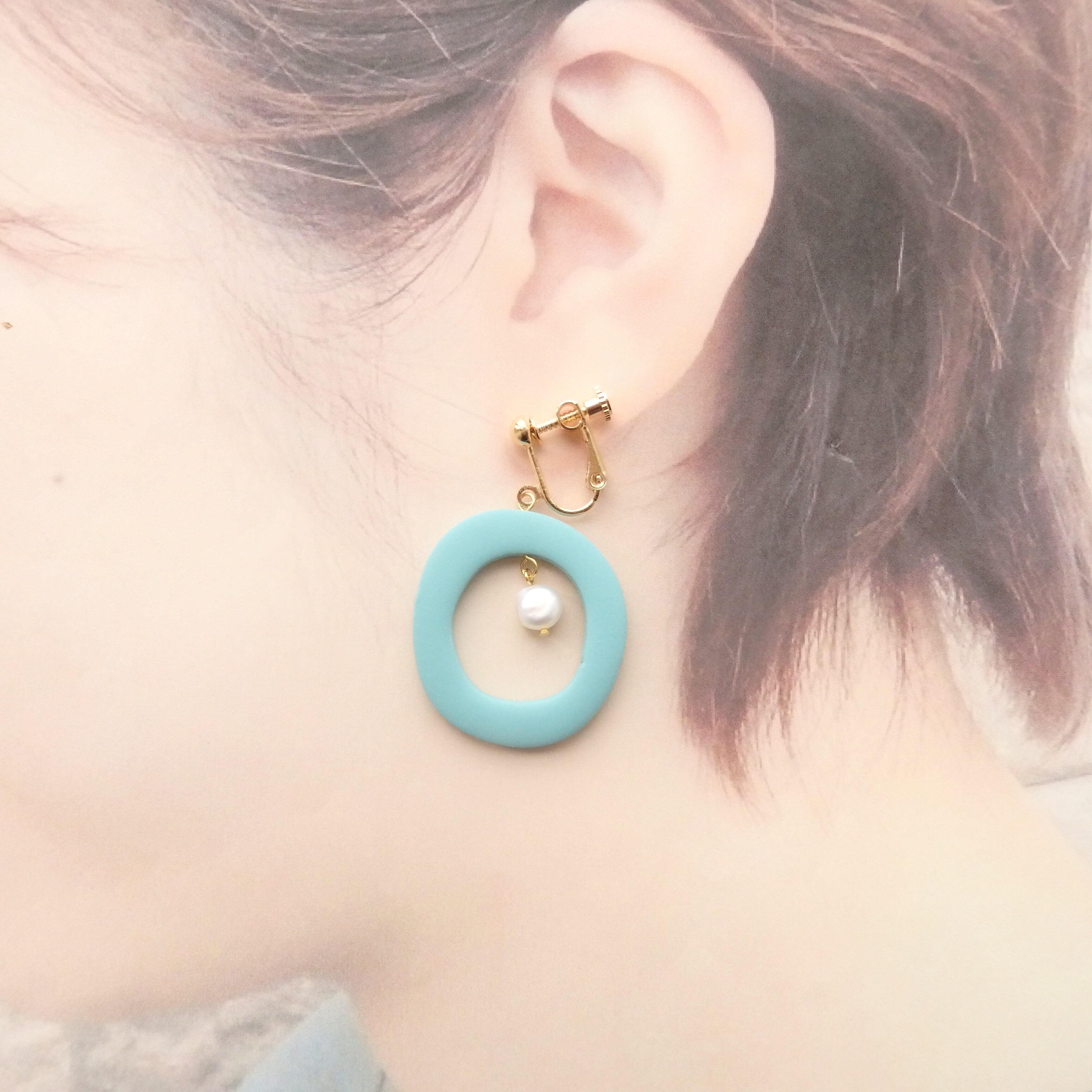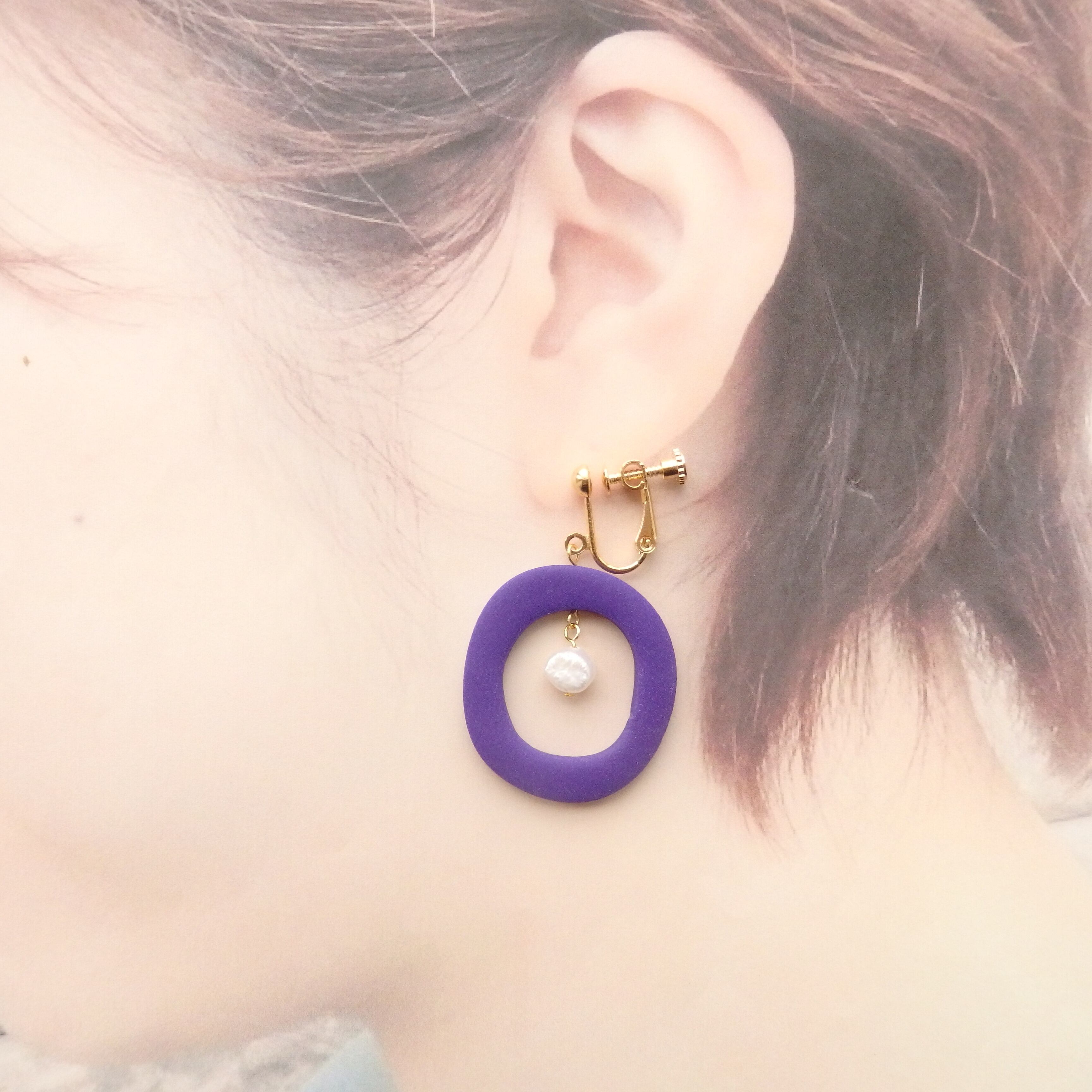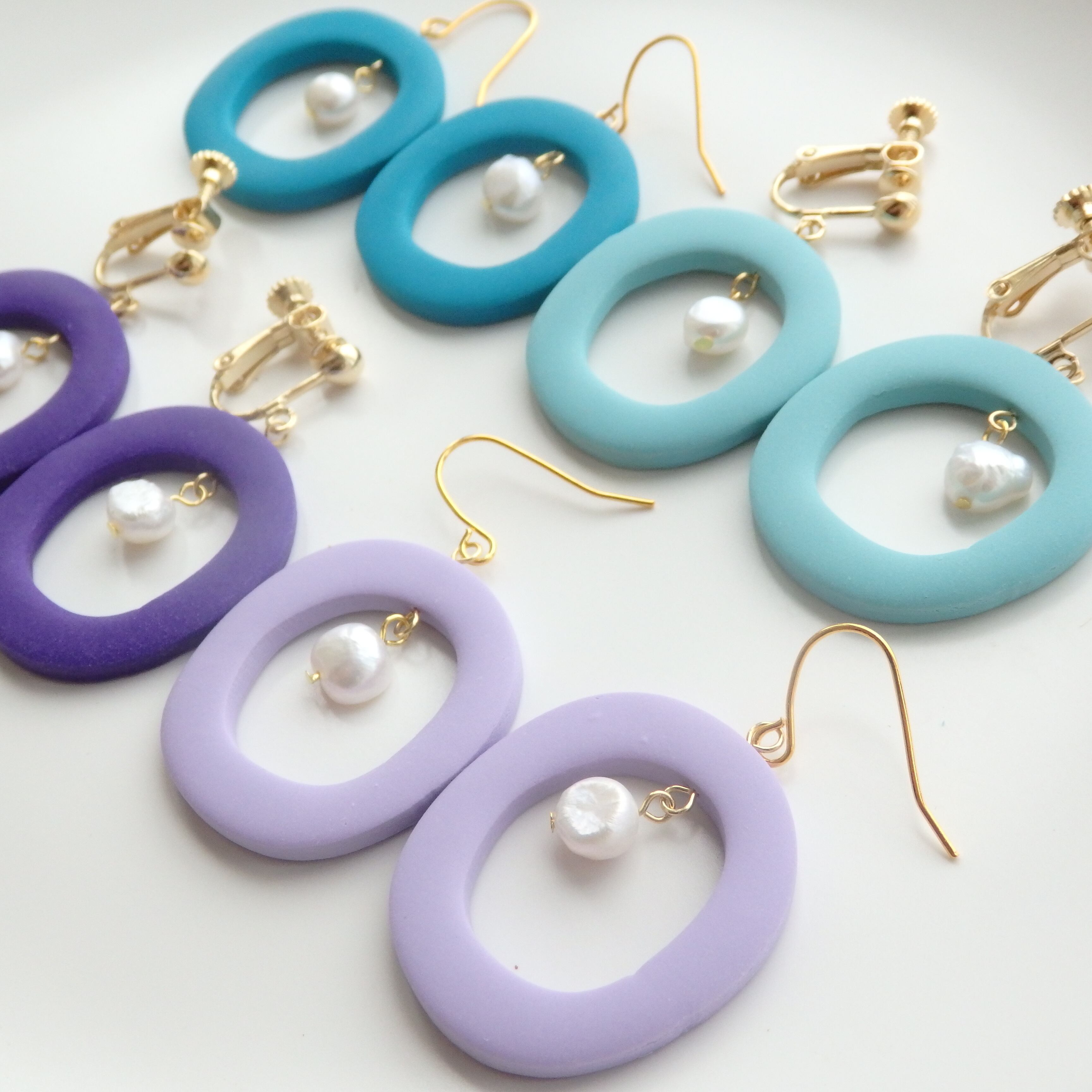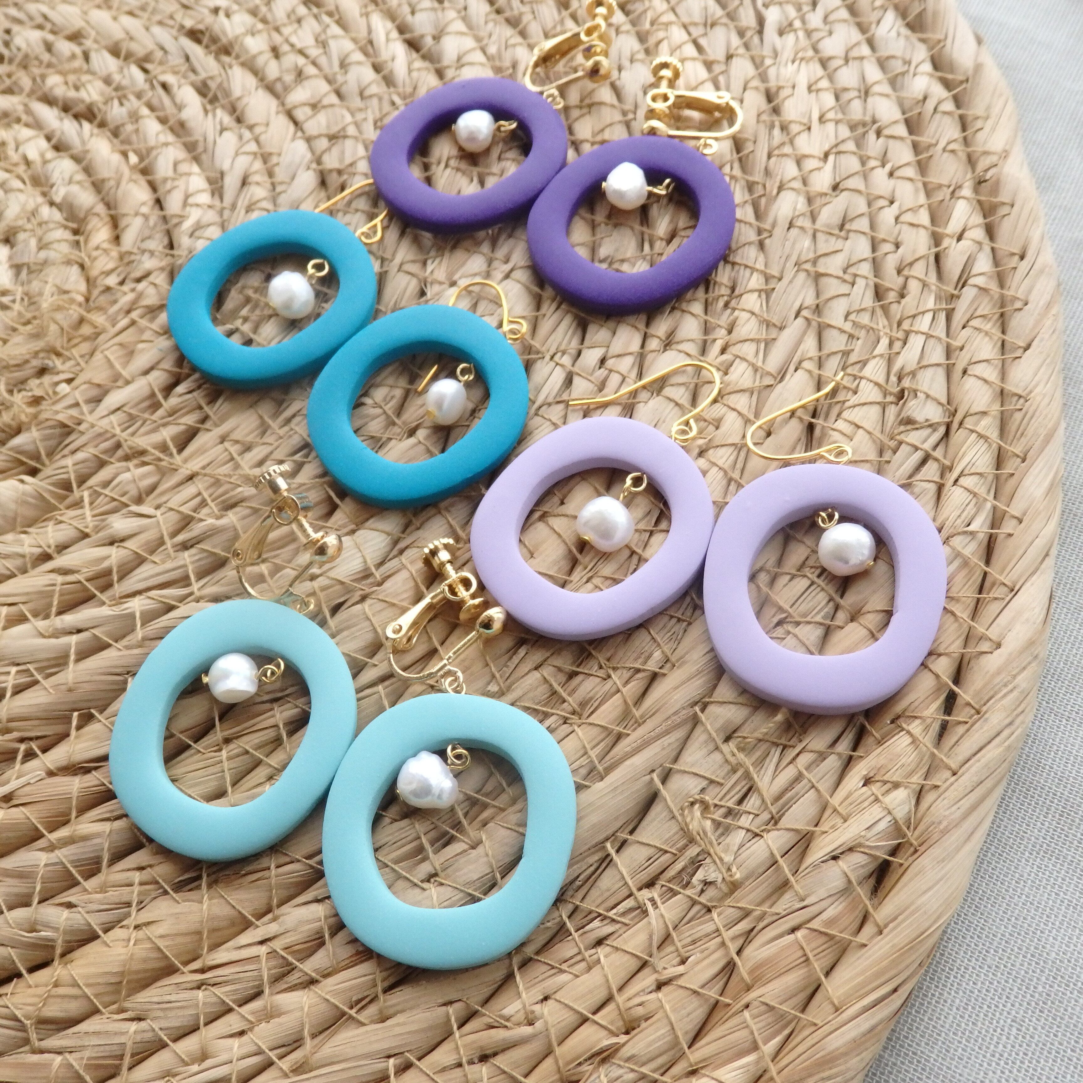 ovalカラー ピアス/イヤリング ポリマークレイ