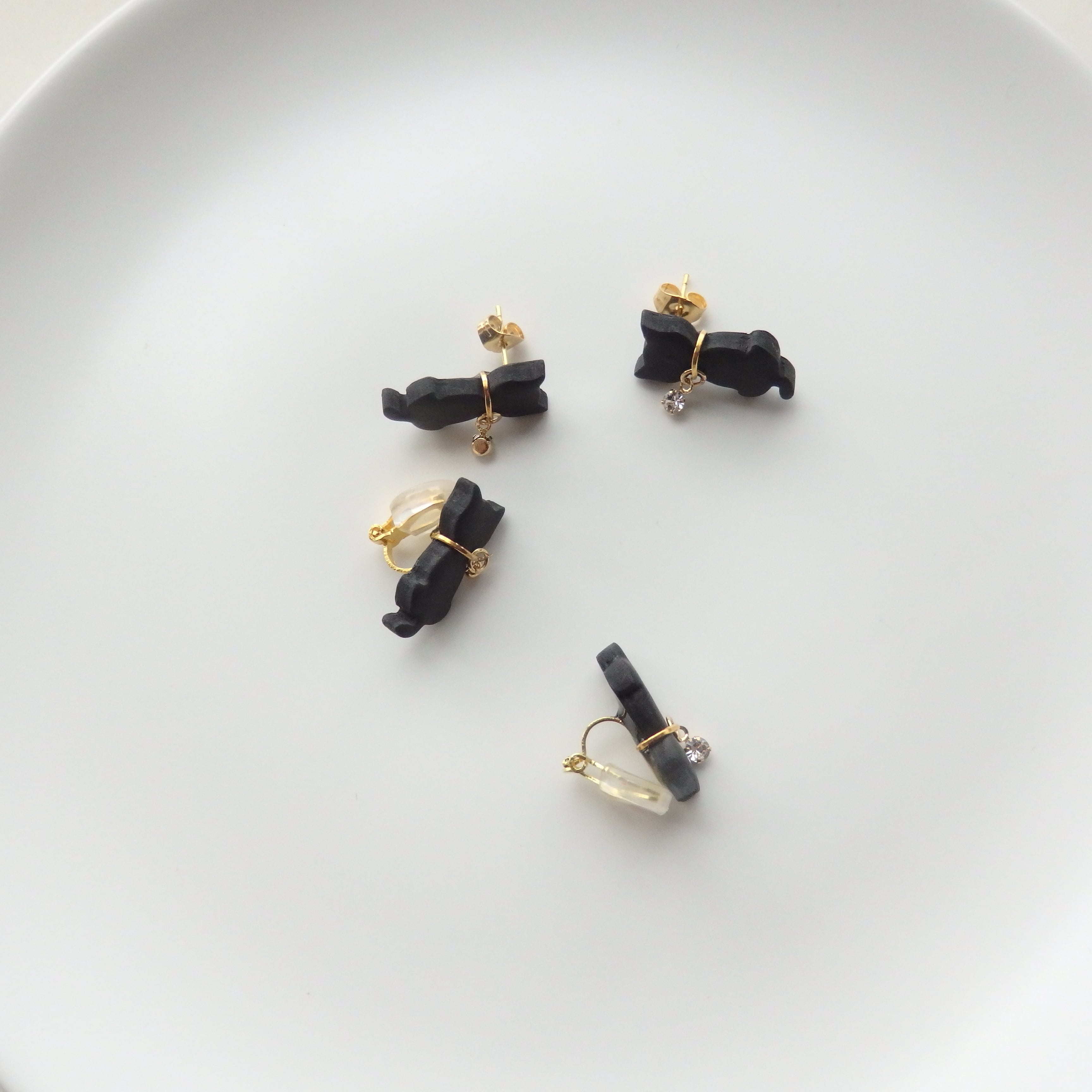 チャーム付き猫ちゃん(ブラック) ピアス/イヤリング