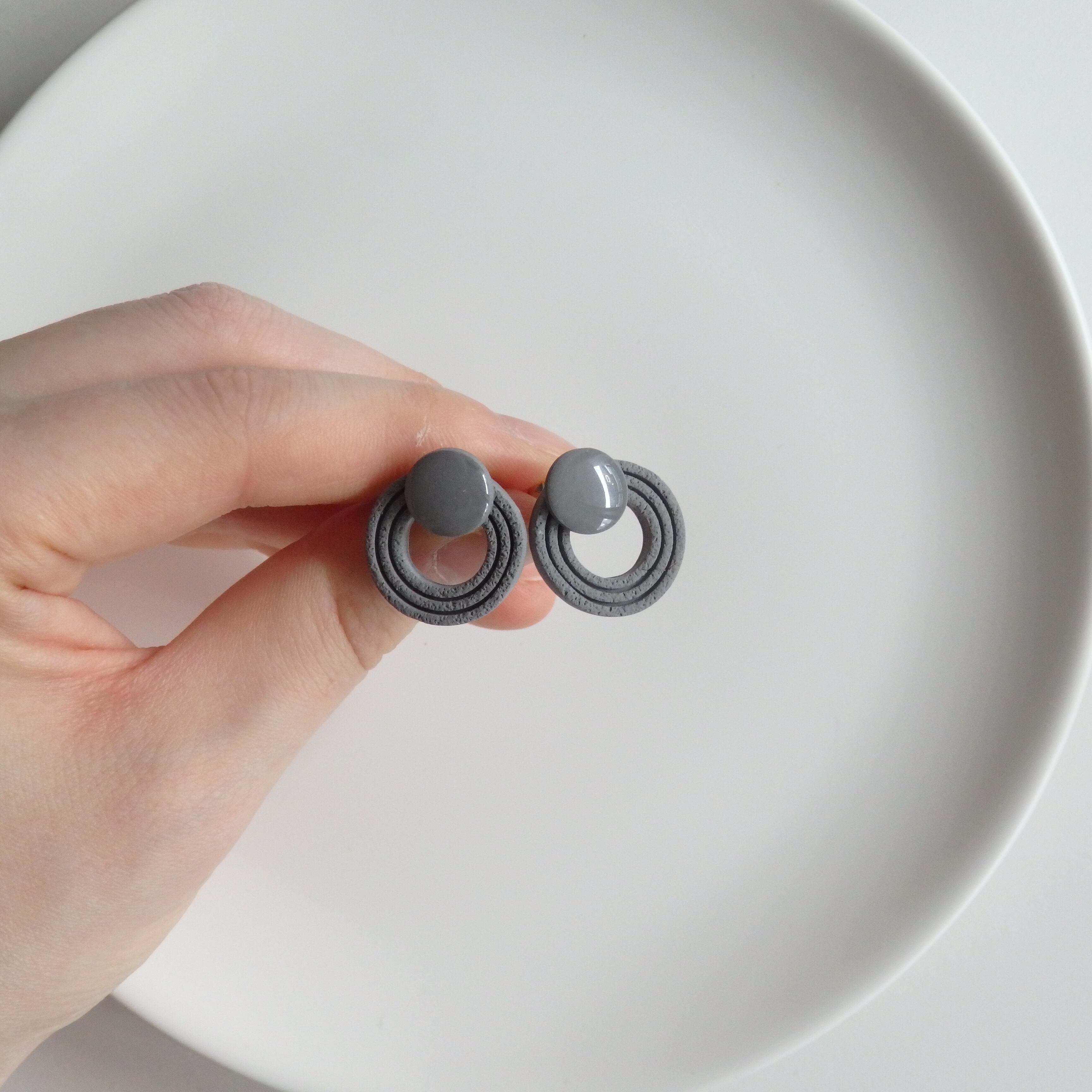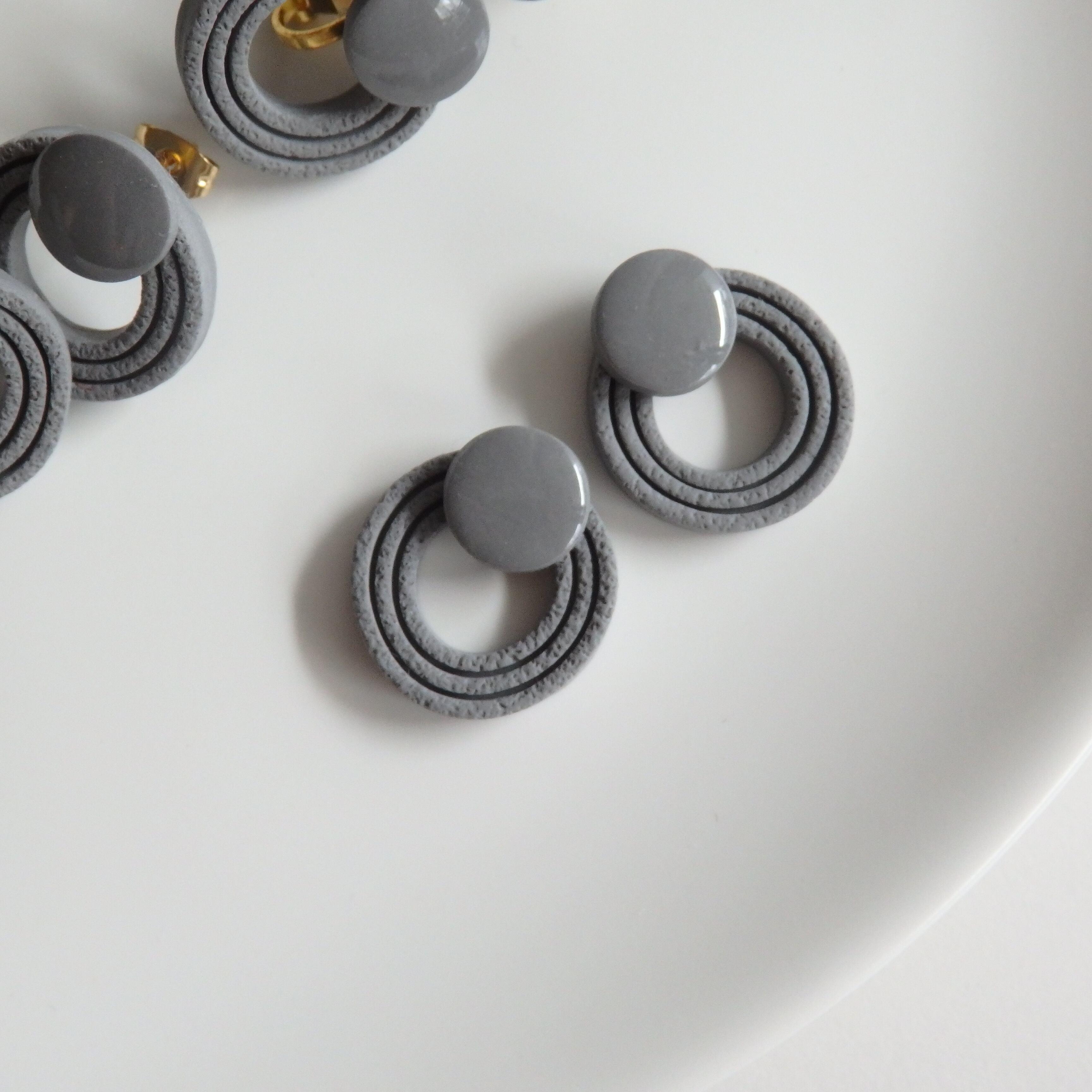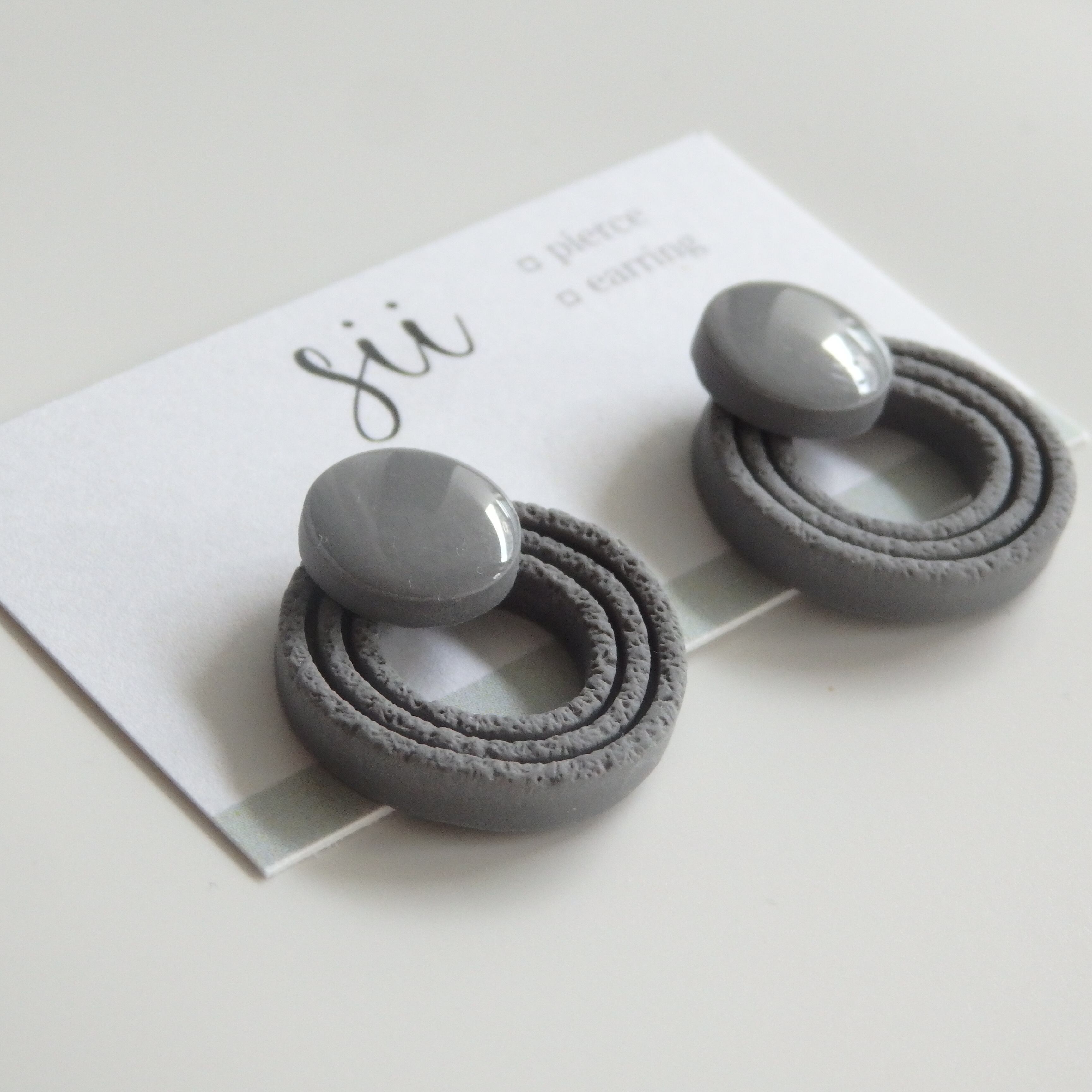グレーのカラーリングが落ち着いた印象を与え、様々なスタイルに合わせやすいアクセサリーです。