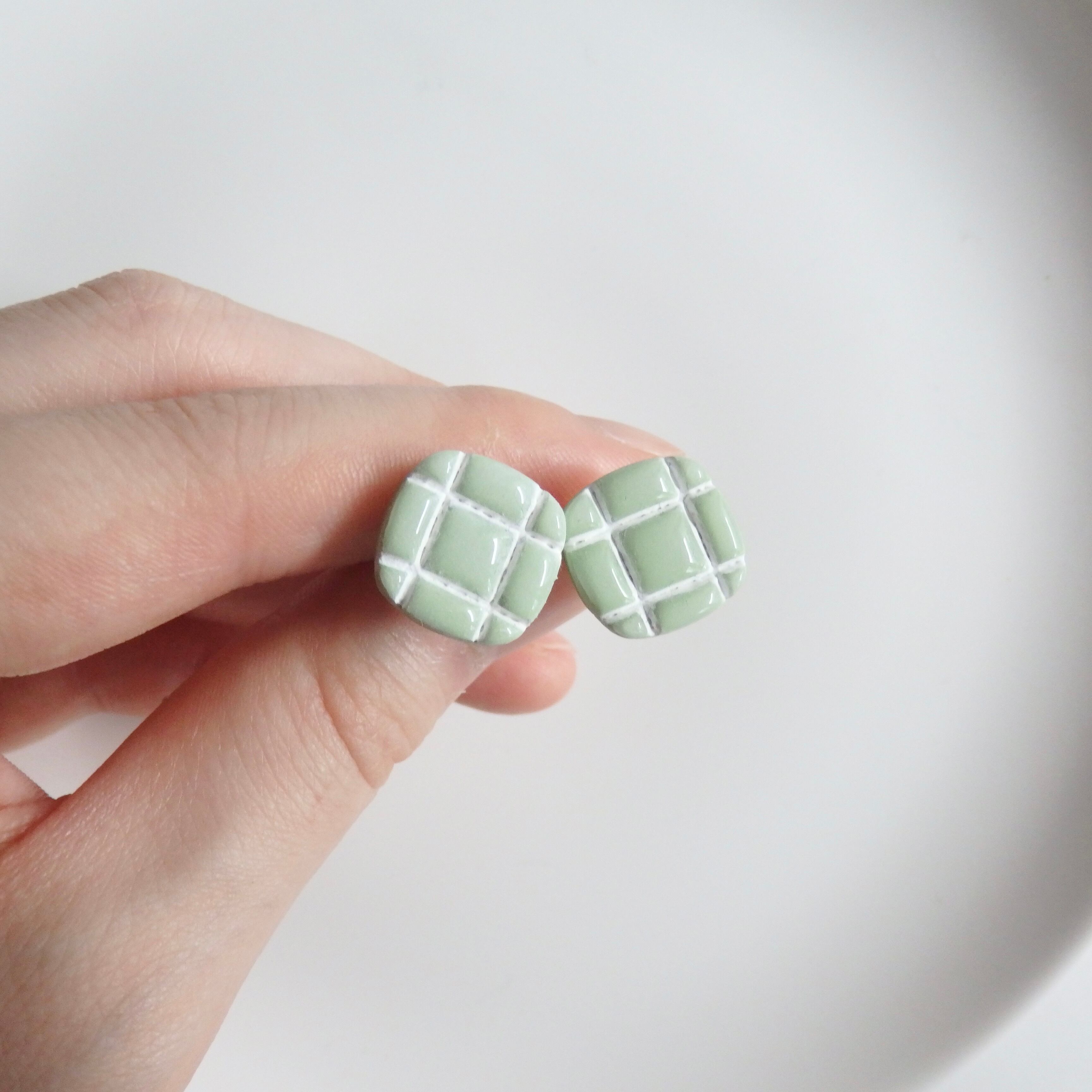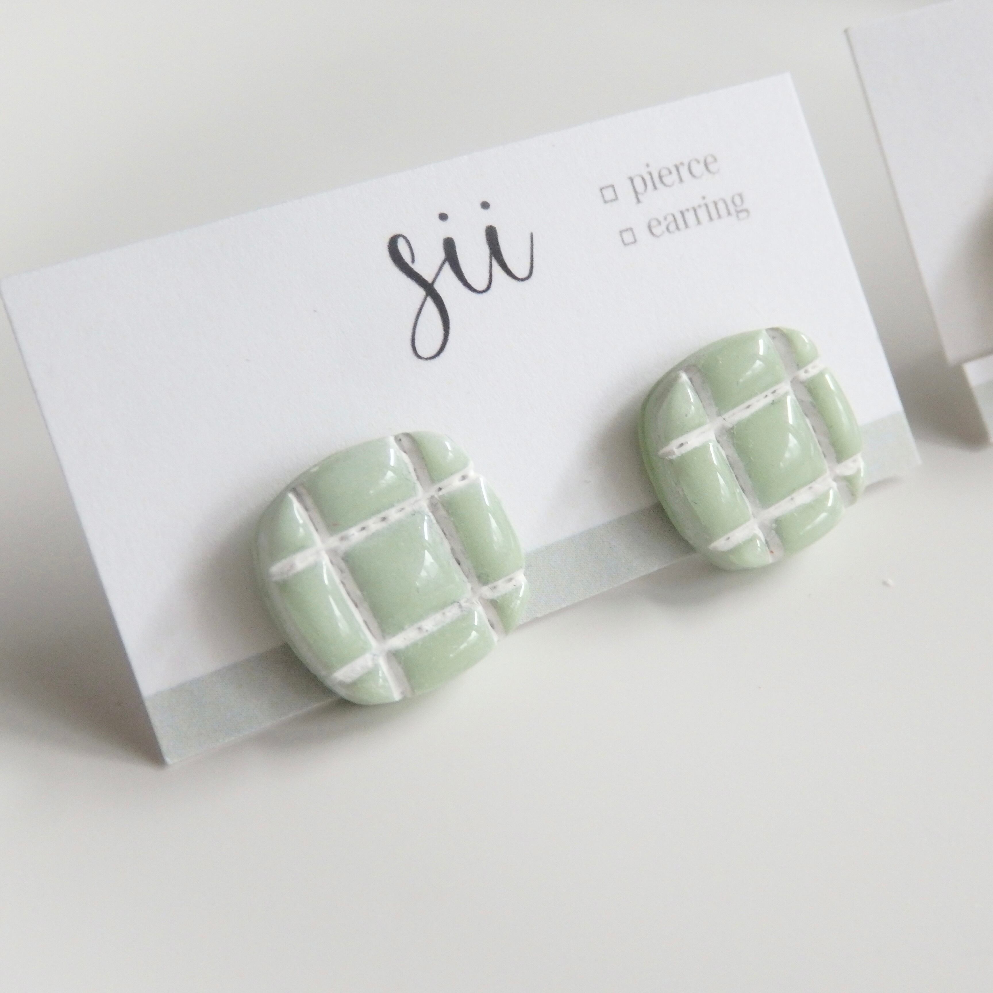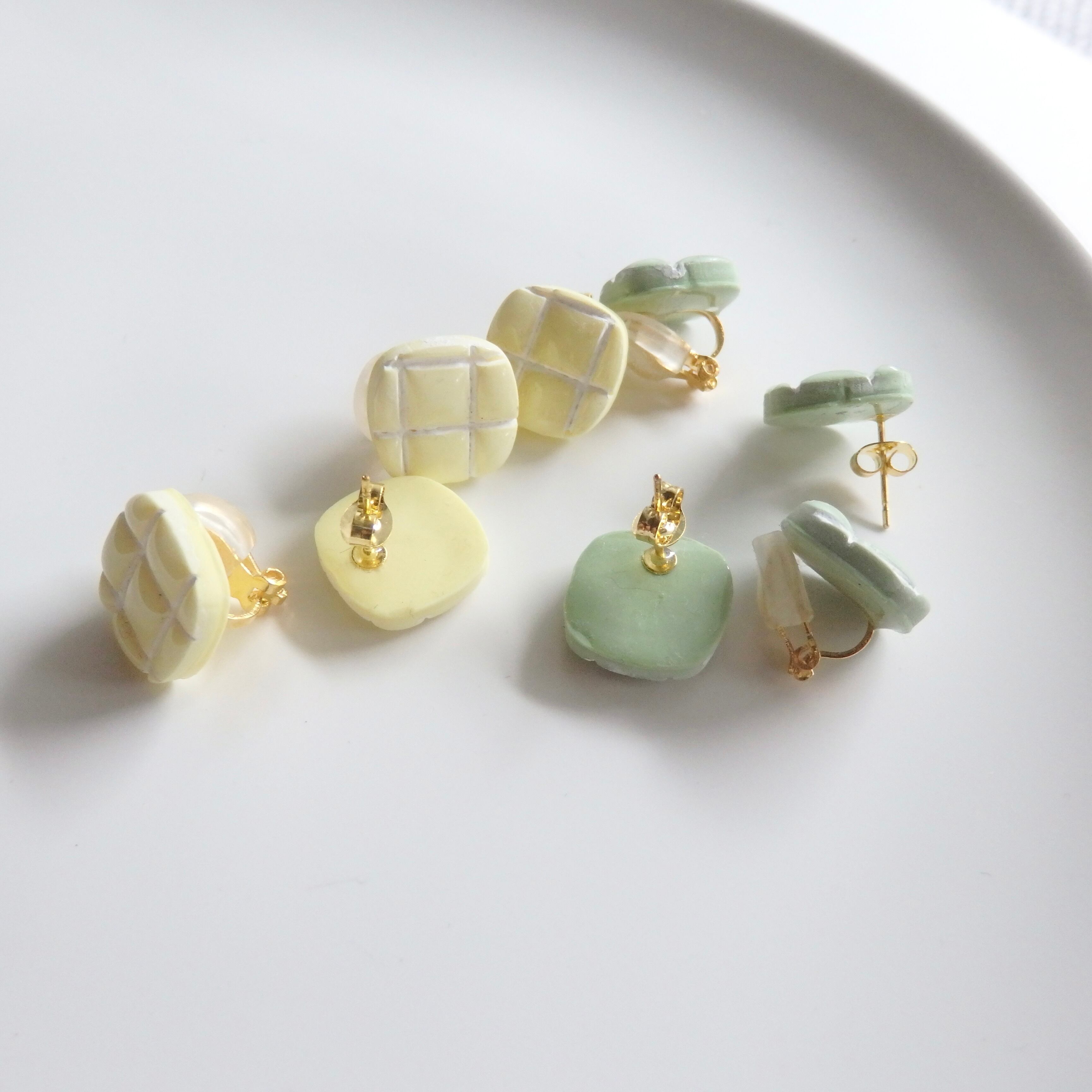 淡い色味と韓国タイル風のデザインが可愛らしいピアス/イヤリング。