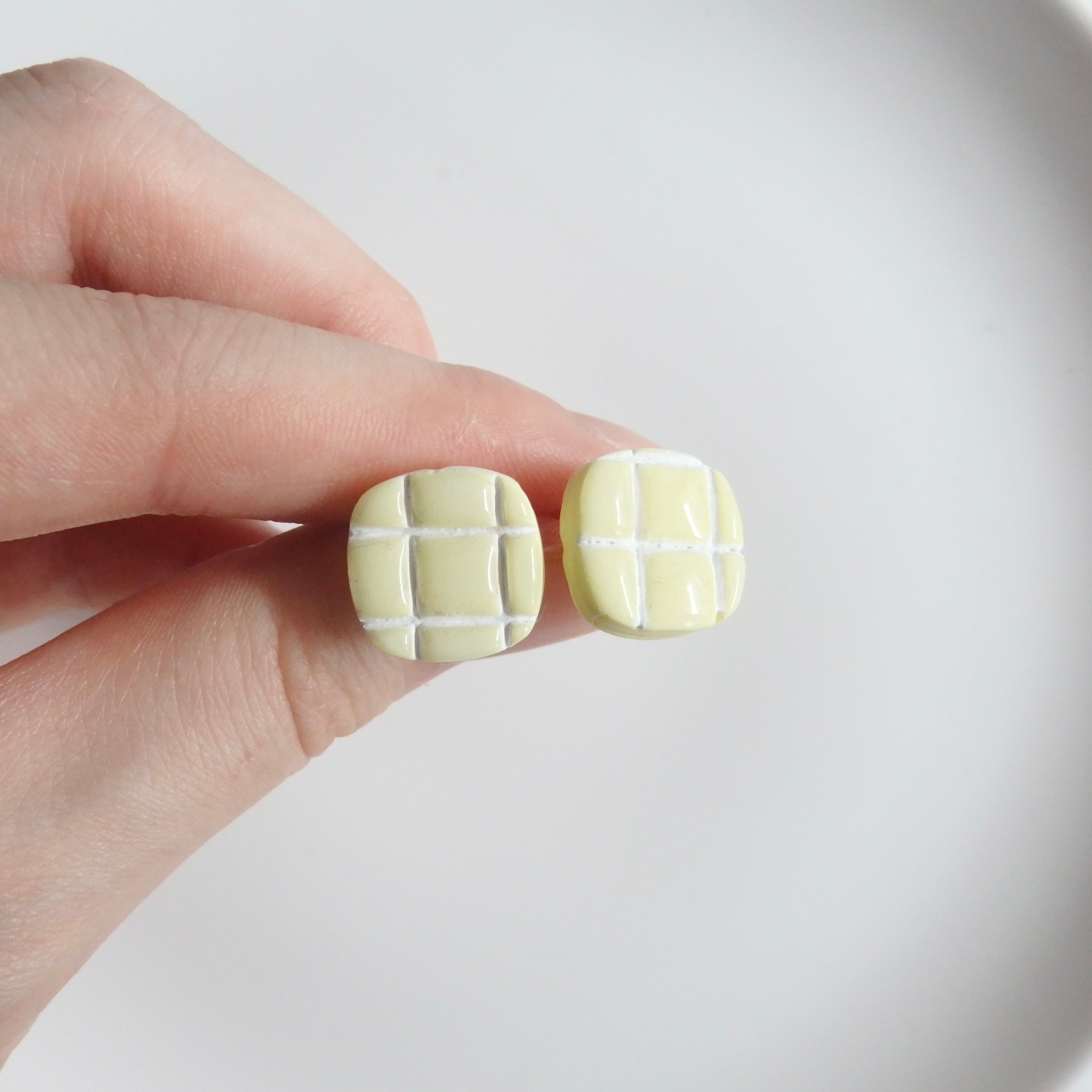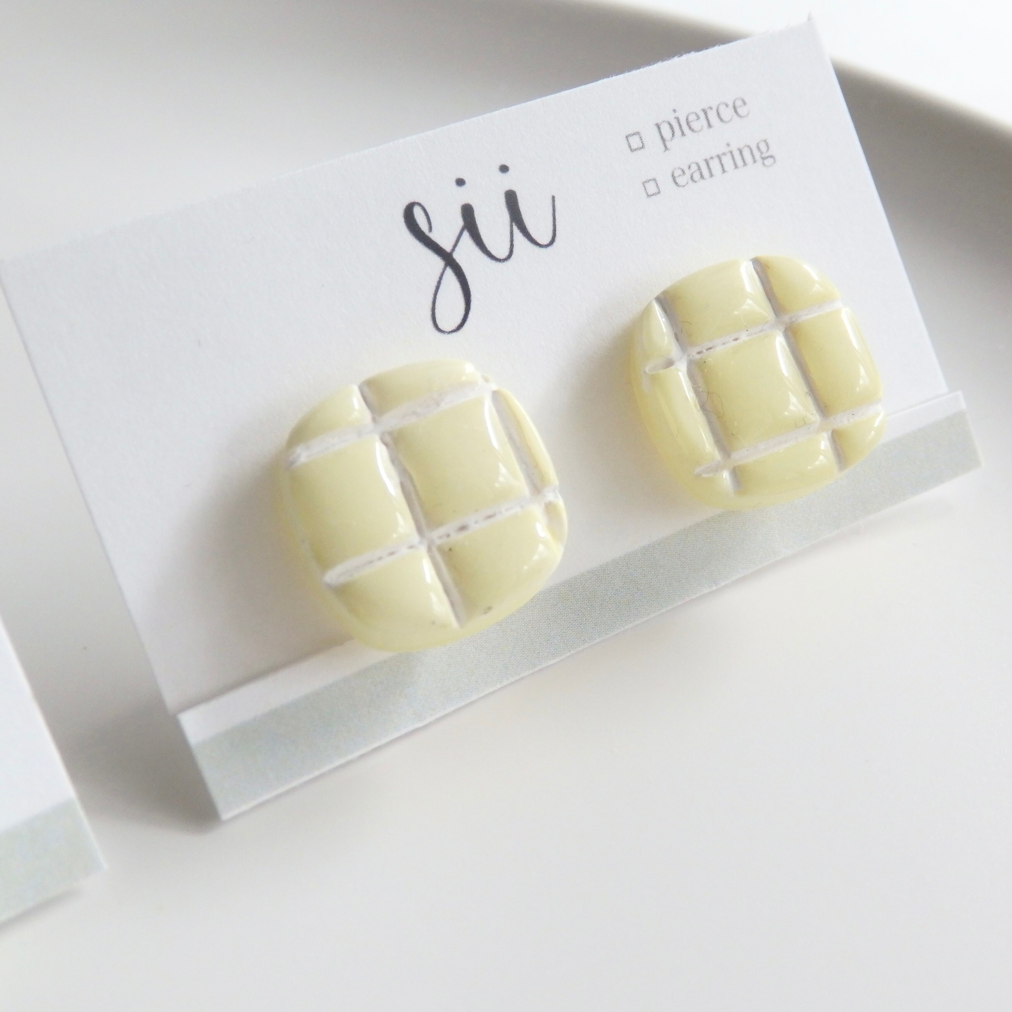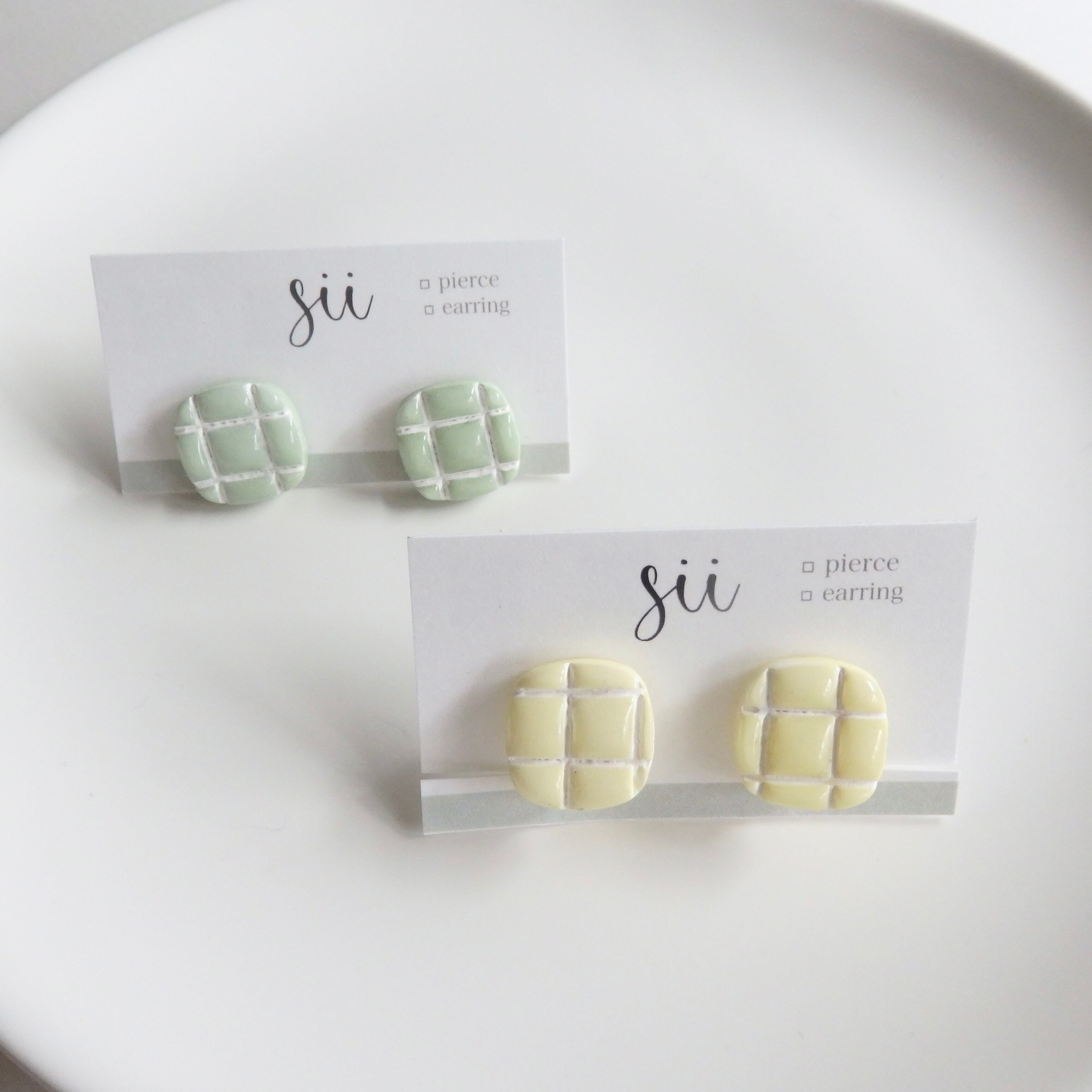 淡い色味と韓国タイル風のデザインが可愛らしいピアス/イヤリング。